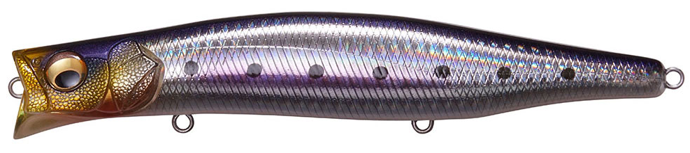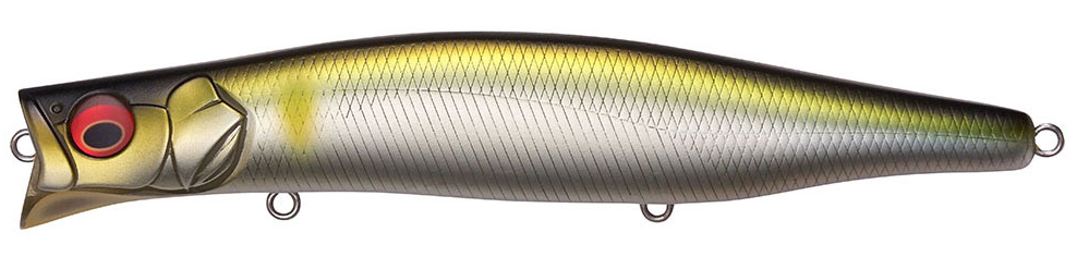 ランカーハンター久保田剛之プロデュースによるカゲロウシリーズの第3弾がKAGELOU155F。シーバスが表層を意識し、ボラや落ちアユ、コノシロ等の大型ベイトを捕食する状況でボリューム感のあるハイアピールボディが最も効果を発揮。大きく切られたダーターカップは水を受ける表面積の拡大により更に水を強く押し動かしターゲットへ猛烈にアピール。アクションはオリジナルサイズと同様、低~中速リトリーブで微細なナチュラルロール、中~高速リトリーブでアピール力のあるスライドを伴ったロールへと移行する(可変ロールアクション)を生み出します。KAGELOU155Fに搭載したLBOⅡは、ボディの大型化に伴い、ウエイト本体およびバランサーシャフトを新たに設計。KAGELOU124Fと比較してウエイト本体重量を2倍以上も増加させています。圧倒的質量を持つ新開発のベアリング内蔵ウエイトがキャスト時に瞬間移動!強力な推進ベクトルを発生させ、驚異的な飛距離を叩き出します。アクション開始時にウエイトは瞬時に前方のネオジム磁界に誘導・固着され、スイミングモードへと移行。リーリングの瞬間から即座にアクションを始動する圧巻のレスポンシビリティと異次元の飛距離を誇るKAGELOU155Fは対モンスターシーバス仕様・究極のマグナムシャローランナーです。