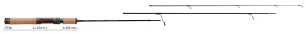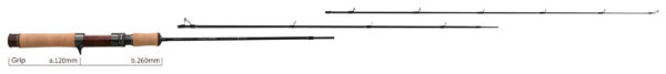 源流や小渓流での小型ミノーゲームに適した、3ピースのベイトミノーイングモデルです。しなやかな入りと十分な反発力を備えたブランクは、手首を返すだけのコンパクトなキャストでも素直に曲がり、必要な反発でルアーを押し出します。これにより低弾道のピン撃ちが行いやすく、狙いの着水点へ自然にルアーを送り込めます。立ち位置やキャスト角度が限られる源流域、小規模渓流、夏のボサ川のような不利なシチュエーションでも、ベイトタックルの強みとブランク性能が相互に作用し、狙い通りのコースへ正確なアプローチを可能にします。
