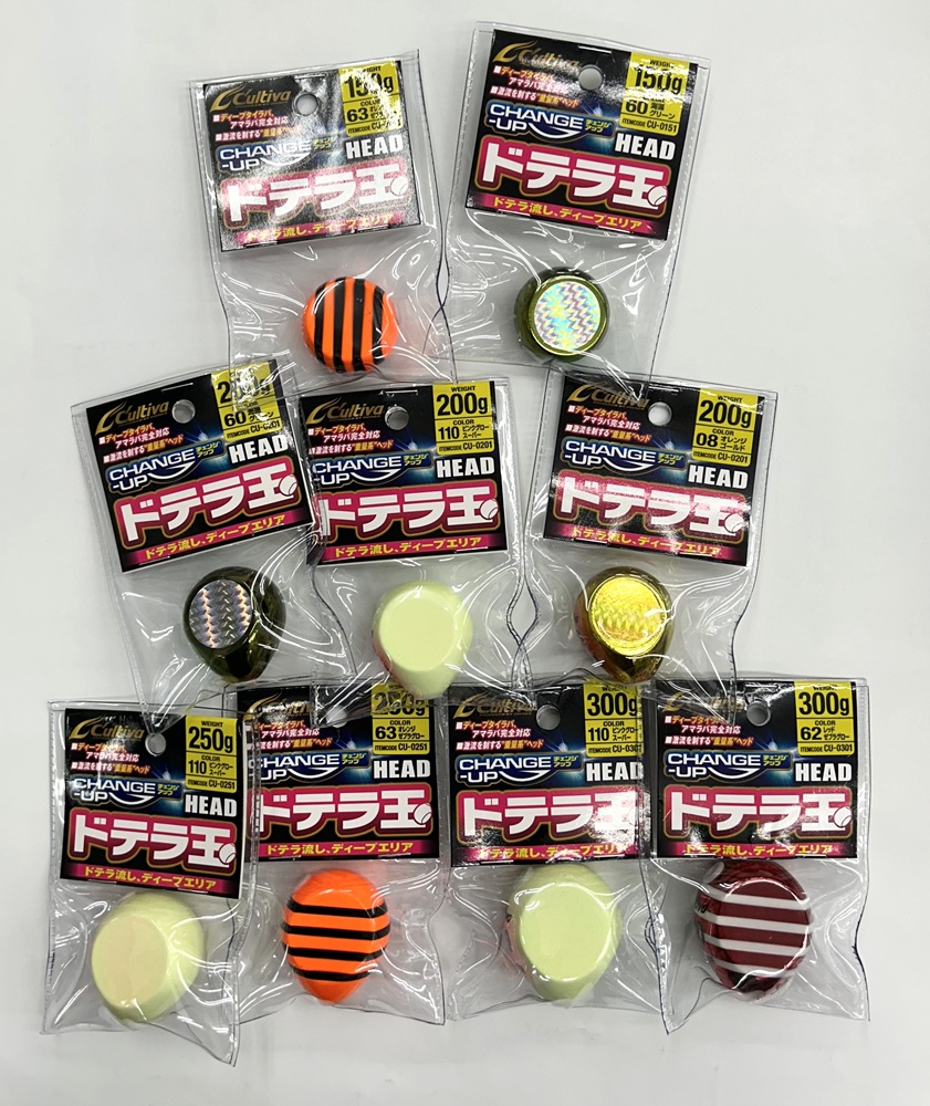 150g: #08 オレンジゴールド, 150g : #60 海藻グリーン, 150g : #63 オレンジゼブラグロー, 150g : #110 ピンクグロースーパー, 200g : #08 オレンジゴールド, 200g : #60 海藻グリーン, 200g : #63 オレンジゼブラグロー, 200g : #110 ピンクグロースーパー, 250g : #62 レッドゼブラグロー, 250g : #63 オレンジゼブラグロー, 250g : #110 ピンクグロースーパー, 300g : #62 レッドゼブラグロー, 300g : #63 オレンジゼブラグロー, 300g : #110 ピンクグロースーパー