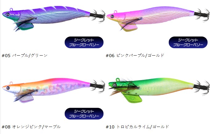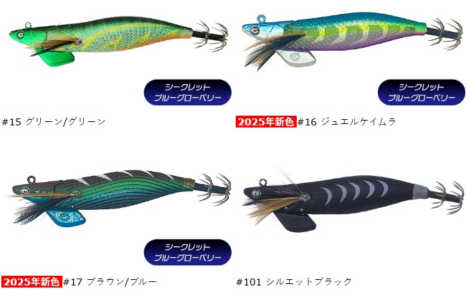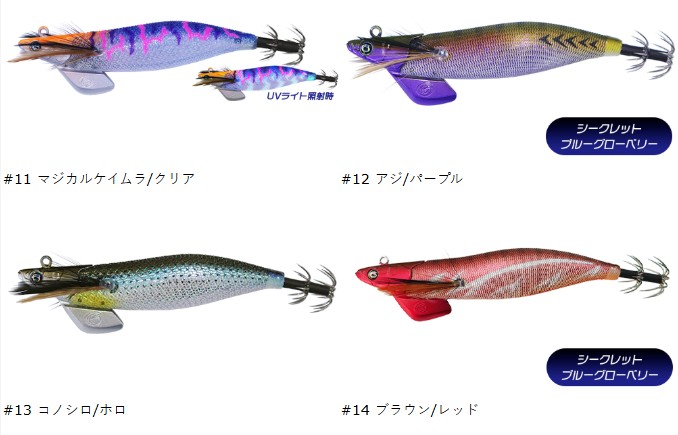3.0号:パープル/パープル, 3.0号:パープル/グリーン, 3.0号:トロピカルライム/ゴールド, 3.0号:ブラウン/レッド, 3.0号:ジュエルケイムラ, 3.0号:ブラウン/ブルー, 3.5号:ジュエルケイムラ, 3.5号:ブラウン/ブルー