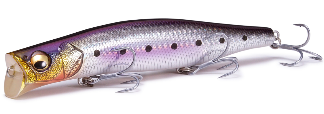 シーバスが表層を意識し、ボラや落ちアユ、コノシロ等の大型ベイトを捕食する状況でボリューム感のあるハイアピールボディが最も効果を発揮。大きく切られたダーターカップは水を受ける表面積の拡大により更に水を強く押し動かしターゲットへ猛烈にアピール。